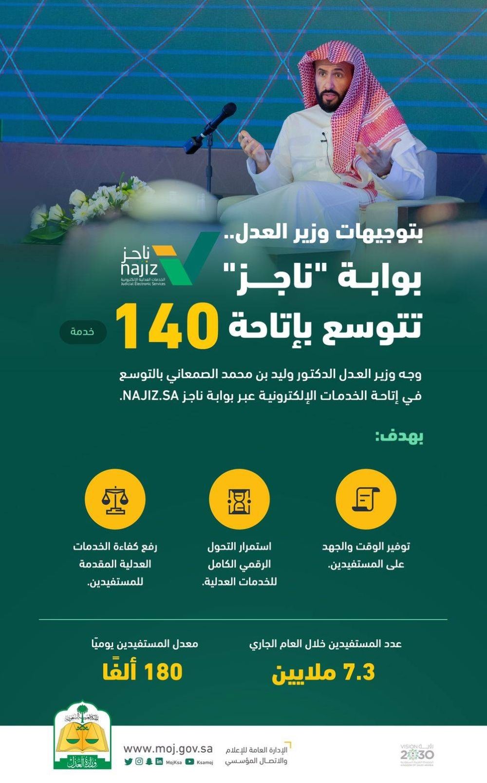 وجه وزير العدل الدكتور وليد بن محمد الصمعاني بالتوسع في إتاحة الخدمات الإلكترونية عبر بوابة ناجز ، مؤكدًا في توجيهاته لفرق العمل...