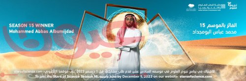 بلغ الموسم الـخامس عشر من البرنامج التعليمي الرائد والمحفز على الابتكار وريادة الأعمال بين أوساط الشباب العربي من مؤسسة قطر، "نجوم العلوم"، نهايته بفوز مهندس الروبوتات، محمد عباس البومجداد، من المملكة العربية السعودية، بلقب أفضل مبتكر عربي.