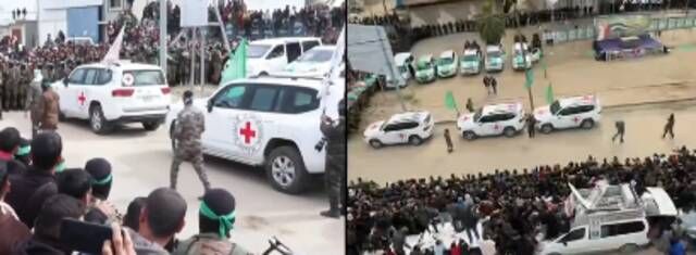 وسلمت حماس المحتجزين الإسرائيليين مدينة دير البلح بقطاع غزة.