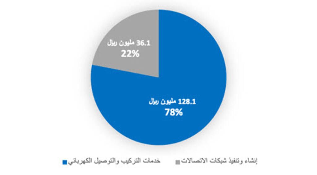 وتتوزع إيرادات الشركة كما في نهاية 2023م بين إنشاء وتنفيذ شبكات الاتصالات،