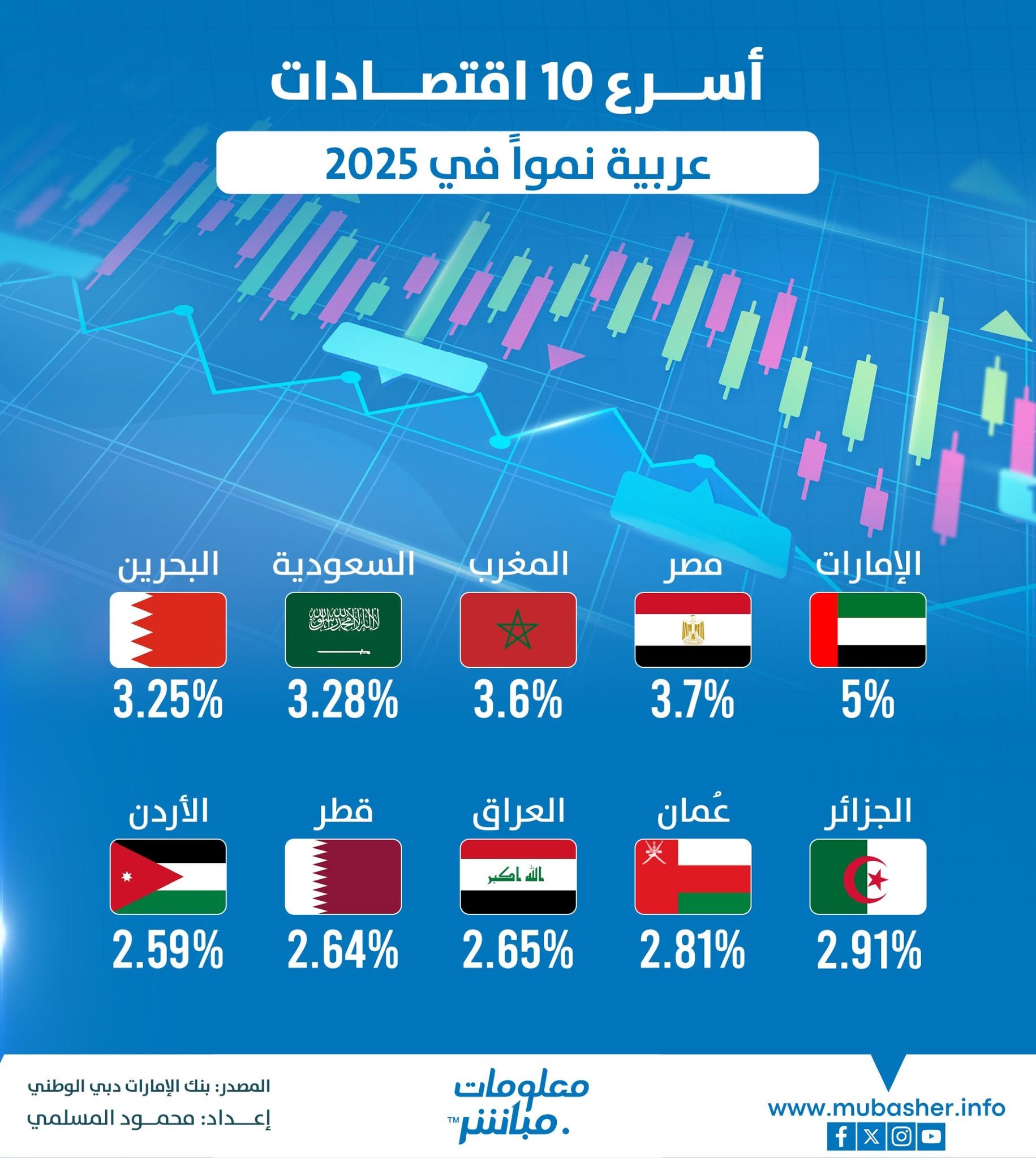 إنفوجرافيك.. أسرع 10 اقتصادات عربية نمواً في 2025