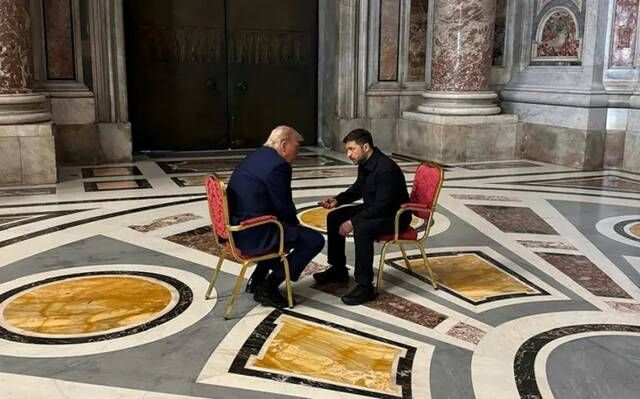 مباشر: نشر مكتب الرئاسة الأوكرانية صورًا للرئيس الأمريكي دونالد ترامب ونظيره الأوكراني فولوديمير زيلينسكي خلال لقاء جمعهما قبيل مراسم جنازة البابا فرنسيس في روما.