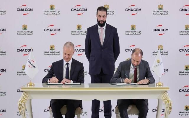 مباشر: وقعت الهيئة العامة للمنافذ البرية والبحرية في سوريا، اليوم الخميس، عقدا استثماريا مع شركة "CMA CGM" الفرنسية لتطوير وتشغيل ميناء اللاذقية لمدة ثلاثين عاماً.