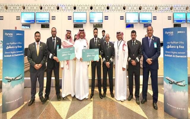 وأعلنت شركة طيران ناس، عبر صفحتها في منصة "إكس"، الاحتفال بتدشين أولى رحلاتها المباشرة بين جدة ودمشق في مطار الملك عبد العزيز الدولي، كثاني خط سير يربط بين المملكة وسوريا، ضمن خطة الشركة الاستراتيجية للنمو والتوسع تحت شعار "نربط العالم بالمملكة".