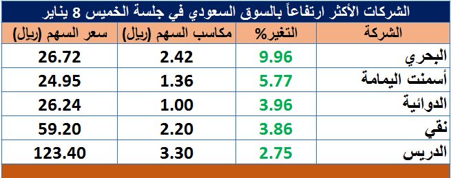72 شركة تقود "تاسي" للارتفاع في جلسة الخميس.. "البحري" الأكثر ارتفاعاً بـ10%