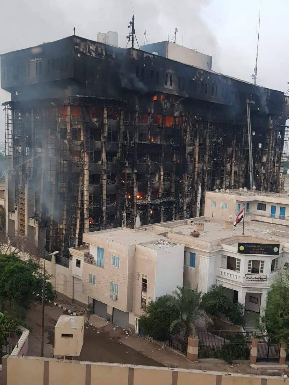 وتابع البيان: أسفرت المعاينة عن تفحمٍ بكامل مبنى مديرية الأمن، وألسنة اللهب تتصاعد من طوابقه العُليا، ورجال الإطفاء والحماية المدنية، مدعومين بطائراتٍ للقوات المسلحة، في سعيٍ حثيث للسيطرة على الحريق وإخماده، إضافة إلى عملياتِ إجلاءِ المصابين عبر سيارات الإسعاف الموجودة بمحل الواقعة.