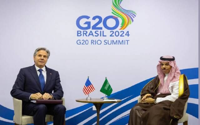 الرياض - مباشر: التقى الأمير فيصل بن فرحان بن عبد الله وزير الخارجية، اليوم الاثنين، وزير خارجية الولايات المتحدة الأمريكية أنتوني بلينكن، وذلك على هامش انعقاد قمة دول مجموعة العشرين، في مدينة ريو دي جانيرو البرازيلية.