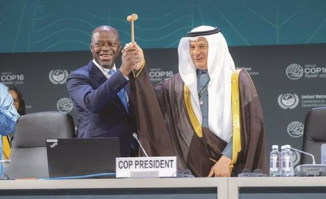 جاء ذلك خلال كلمة، في ختام أعمال مؤتمر الأطراف السادس عشر لاتفاقية مكافحة التصحر بالرياض، الذي صدر عنه أكثر من (35) قرارًا حول مواضيع محورية شملت، الحد من تدهور الأراضي والجفاف، والهجرة، والعواصف الترابية والرملية، وتعزيز دور العلوم والبحث والابتكار، وتفعيل دور المرأة والشباب والمجتمع المدني، والسكان الأصليين لمواجهة التحديات البيئية، بالإضافة إلى الموافقة على مواضيع جديدة ستدرج ضمن نشاطات الاتفاقية مثل المراعي، ونظم الأغذية الزراعية المستدامة، وفقا لوكالة أنباء السعودية "واس"، اليوم السبت.