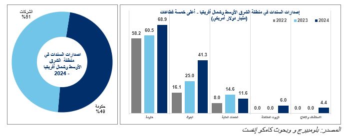 وعلى مستوى القطاعات المختلفة في منطقة الشرق الأوسط وشمال إفريقيا، سجلت البنوك أعلى معدل نمو للإصدارات خلال 2024، بينما شهد قطاع الخدمات المالية تراجعاً بما يقرب من الخمس.