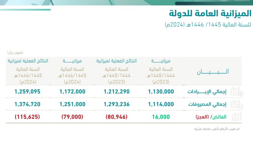 الميزانية السعودية تسجل عجزا بقيمة 115.63 مليار ريال في عام 2024