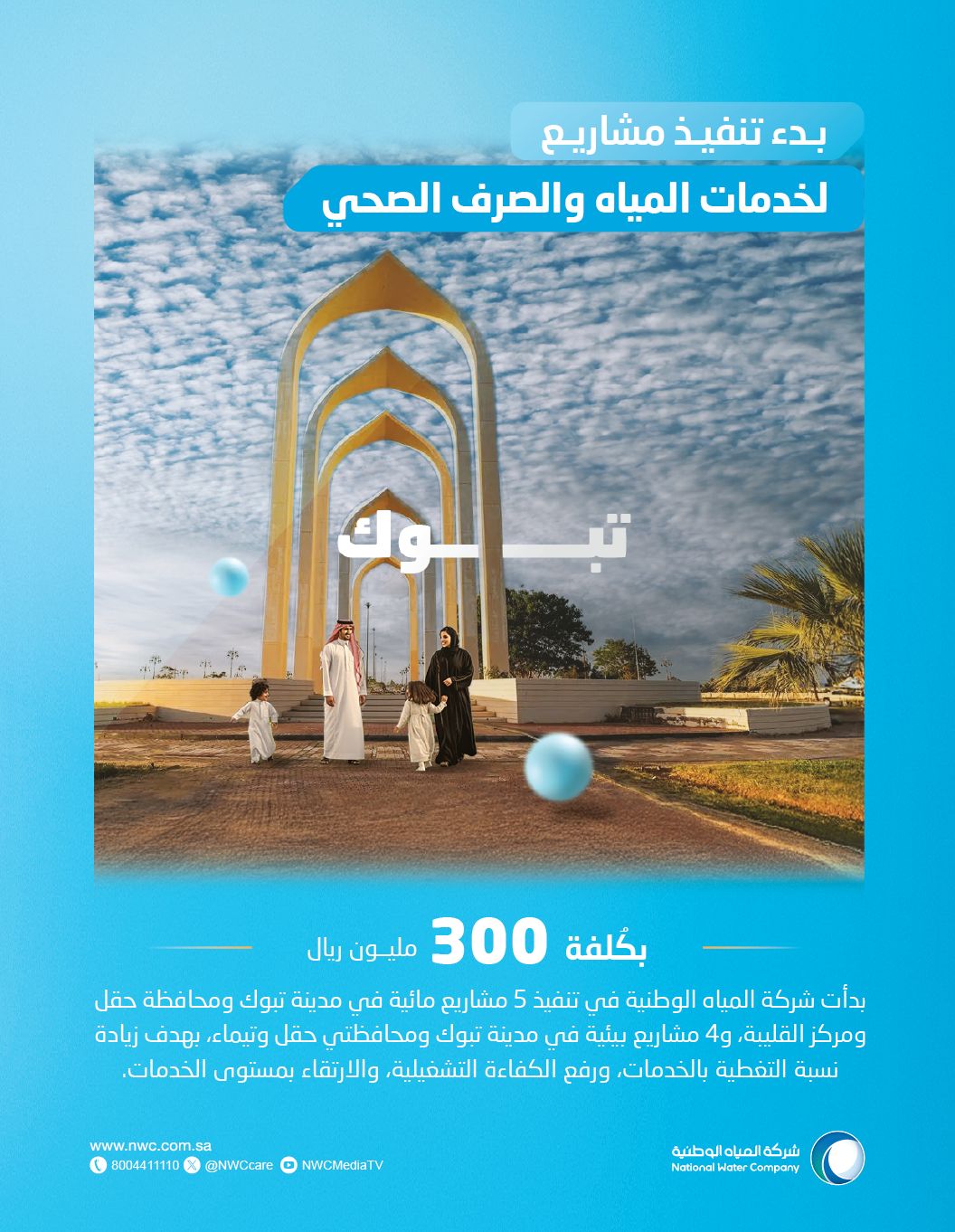 "المياه الوطنية" تبدأ تنفيذ 9 مشروعات في تبوك بتكلفة 300 مليون ريال