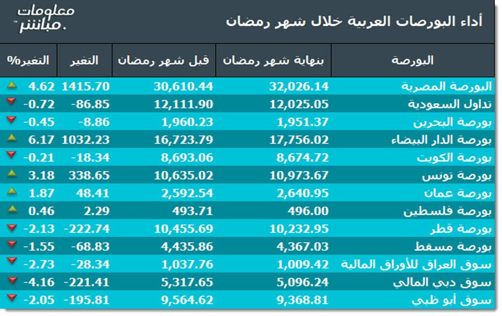 تباين مؤشرات أسواق المال العربية خلال شهر رمضان