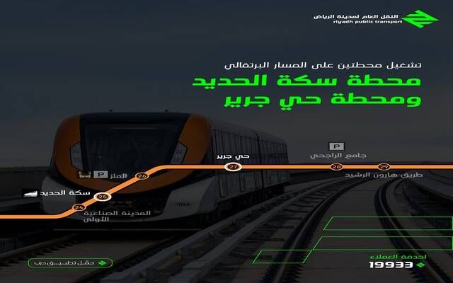 الرياض - مباشر: أعلنت منصة النقل العام لمدينة الرياض أنه تم تشغيل محطتين جديدتين في قطار الرياض على المسار البرتقالي.