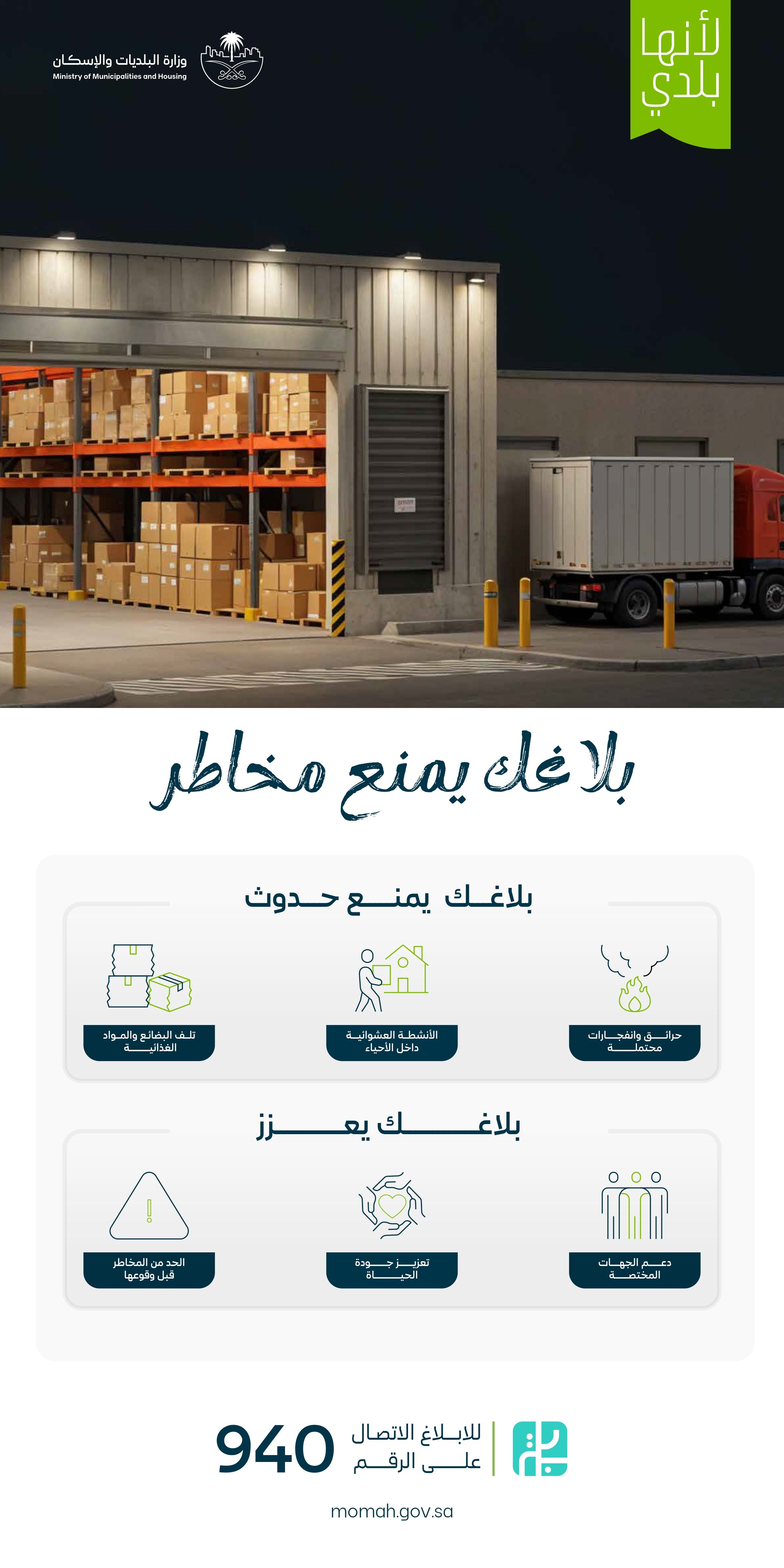 وأفادت الوزارة، بأن الإبلاغ عن التخزين غير المرخّص داخل النطاق العمراني يُسهم في الحد من خطر الحرائق وتلف البضائع والمواد المختلفة، وإيقاف الممارسات والأنشطة العشوائية داخل الأحياء، وتعزيز اتباع إجراءات السلامة والحد من المخاطر قبل وقوعها، وتوفير بيئة آمنة داخل المستودعات بشكل مرخّص ونظامي ومطابق للاشتراطات المعتمدة، إلى جانب تطوير البيئة العمرانية على مستوى المدن، وتحقيق أعلى معايير التنظيم والامتثال.