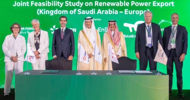 وتضمنت الاتفاقيات مذكرة تفاهم متعددة الأطراف مع عدد من الشركات الأوروبية البارزة، منها "إديسون" الإيطالية، و"توتال إنيرجيز" الفرنسية، و"زيرو أوروبا" الهولندية، و"إي أن بي دبليو" الألمانية، وتهدف هذه المذكرة إلى تصدير الكهرباء المنتجة من مصادر الطاقة المتجددة في السعودية إلى أوروبا، إلى جانب دراسة الجدوى الاقتصادية وفرص السوق الأوروبي في مجال الطاقة المستدامة.