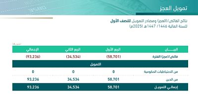 الرياض – مباشر: أظهرت البيانات الفعلية لأداء الميزانية العامة للمملكة العربية السعودية للنصف الأول من السنة المالية 1446 / 1447هـ (2025م)، تسجيل عجز مالي قدره 93.2 مليار ريال.