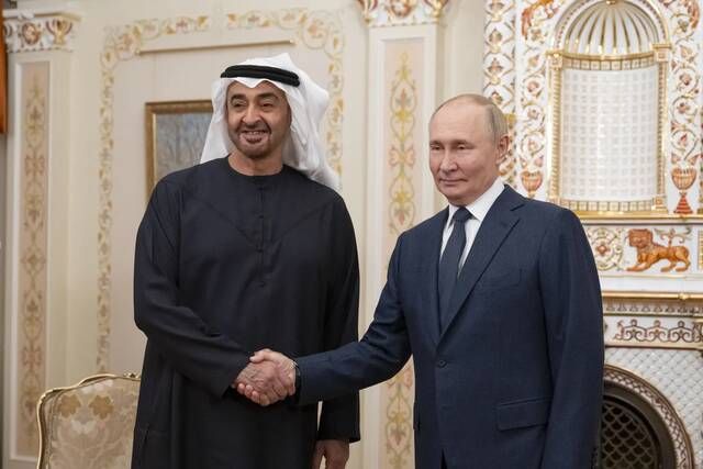 في أكتوبر الماضي 2024 وصل رئيس الإمارات العربية المتحدة محمد بن زايد آل نهيان، إلى موسكو في زيارة رسمية إلى روسيا الاتحادية للمشاركة في أعمال القمة الـ16 لقادة دول مجموعة "بريكس" التي كانت في مدينة قازان الروسية خلال الفترة من 22 إلى 24 أكتوبر والتقى الرئيس الروسي فلاديمير بوتين.