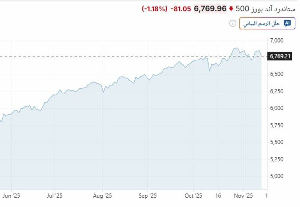 كما هبط مؤشر "إس آند بي 500" بنسبة 0.55% أو 36 نقطة إلى 6,813 نقطة، وكذلك مؤشر "ناسداك" المركب الذي انخفض بنحو 1% أو 232 نقطة إلى 23,173 نقطة.