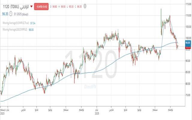 ومن الناحية الفنية، يستمر سهم الراجحي في التحرك ضمن قناة سعرية صاعدة واضحه علي المدي المتوسط ما يؤكد سيطرة الاتجاه الصاعد ، ولكن يواصل السهم تحركه السلبي علي المدي القصير بعد كسر دعم 97 ريال وتحول هذا المستوي إلى مقاومة.