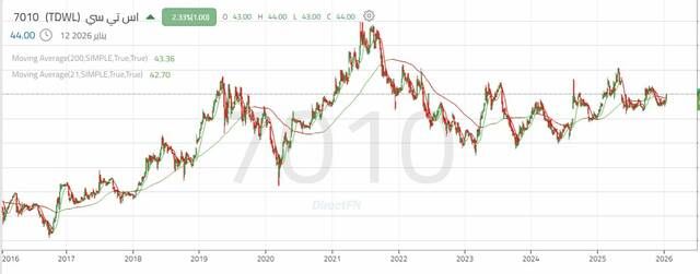 منذ مطلع عام 2025، واصل سهم اس تي سي تحركه في اتجاه صاعد بداية من شهر يناير حتى شهر أبريل، ليبلغ مستوى 44.50 ريال. إلا أنّ السهم دخل بعد ذلك في موجة هبوط حاد نتيجة عمليات جني الأرباح، متراجعًا حتى مستوى 41.00 ريال. لاحقًا، اتخذ السهم حركة عرضية امتد من شهر يونيو حتى منتصف سبتمبر، في نطاق تداول ضيق نسبيًا يعكس حالة من الترقّب.