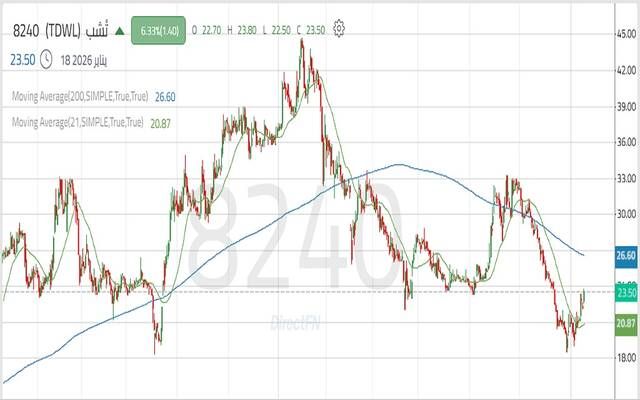 ويواجه السهم حاليًا مستوى مقاومة هامة عند 23.50 ريال، والثبات أعلاها يدفع السهم نحو مستوى 24.60 ريال، يليه مستوى 25.95 ريال- 26.00 ريال.